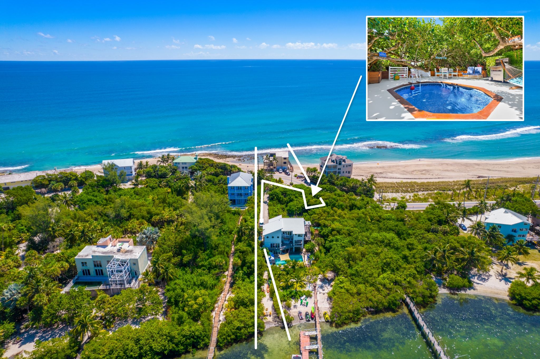 And across the street lies your own private access path to the pristine Indian River, offering some of the best paddleboarding, kayaking and watersports in the world. (Enjoy our complimentary kayaks, paddleboards, snorkel gear, bicycles, boogie boards, metal detectors, & much more.)
